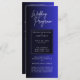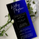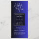 Las tarjetas del programa nupcial azul forman parte de la papelería del boda y se utilizan para proporcionar a los invitados información sobre el orden de los actos y otros detalles importantes relacionados con la ceremonia del boda y la recepción. Las tarjetas de programa de bodas azules sirven como guía para los invitados que asisten al boda. Esbozan el horario de la ceremonia y recepción, incluyendo detalles sobre la fiesta de boda, lecturas, selecciones musicales y cualquier tradición cultural o religiosa que se realice. El contenido de las tarjetas del programa de bodas azules puede variar según el formato y las tradiciones del boda. Los elementos comunes incluyen: * Orden de los eventos: Esto incluye la procesión, el intercambio de votos, el intercambio de anillo, lecturas y cualquier ritual o tradición que forme parte de la ceremonia. * Nombres de la fiesta de boda: El programa puede enumerar los nombres y títulos de las damas de honor, padrinos, ujieres y otros participantes. * Reconocimientos: Las parejas a menudo usan tarjetas de programa para agradecer a sus invitados, familias y a cualquier otra persona que colaboró con el boda. * Selecciones musicales: El programa puede detallar las canciones o piezas musicales que se tocan en diferentes partes de la ceremonia. * Explicación de rituales: Si hay rituales culturales o religiosos que los invitados no conocen, se puede dar una breve explicación. Las tarjetas de programa de boda azules son a menudo parte de una suite de papel más grande para bodas, que puede incluir tarjetas de guardar la fecha, invitaciones, tarjetas RSVP, tarjetas de menú, tarjetas de plaza y tarjetas de agradecimiento. Coordinar el diseño y el esquema de color entre estos elementos puede crear un aspecto coherente para el boda.