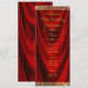 Menú de fiesta de cumpleaños en rojo y dorado y programa con hermosa borde dorada en un fondo de satén rojo. Estos menús de fiesta en rojo y dorado se personalizan fácilmente con el texto que elija en la parte delantera y trasera en el estilo de fuente que prefiera.