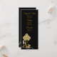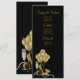 Elegante menú y programa negro y dorado con hermosos zapatos de tacón alto dorados, globos y perlas en un fondo de color elegido por usted. El mismo diseño está en la parte posterior. Estos programas o menús negros y dorados se personalizan fácilmente con el texto de su elección en la parte frontal y posterior en el estilo de letra que prefiera.