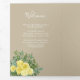 Hermosos programas de casamiento floral de color amarillo claro y caqui con abundante vegetación. Perfecto para una temática floral o boda blanco tradicional en primavera o verano. Personalizar el color y el texto para hacer de este programa de boda su propio!