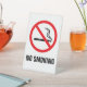 Cartel de un pedestal de la ventana para no fumar que presenta un cigarrillo negro con humo saliendo y un rojo, cruzado alrededor de ella. Debajo está el personalizable, el texto negro "sin fumar".