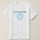 "Prohibido" blanco y azul en camiseta negra con logotipo blanco
