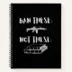 Un cuaderno tipo tipografía aboga por prohibir las armas de asalto, no los libros en nuestras escuelas. Texto blanco con AR-15 blanco y gráficos de libro sobre fondo negro.