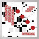 Impresión de proporción abstracta. Incluso formas proporcionales dispuestas en círculos oblongos y cuadrados en blanco y negro rojo.