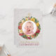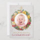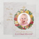 Propuesta de madrina para el bautizo de una niña Tiene una foto de una beba en un marco de rosas silvestres con una cruz dorada en la parte superior.