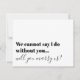 Pide a tu oficiante que te case con esta tarjeta de propuesta de oficiante de tipografía moderna que dice: No podemos decir que sí sin ti... ¿te casarás con nosotros?
