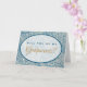 Hay un óvalo blanco transparente con borde azul, con texto dentro. La palabra "Padrinos" está escrita en una elegante letra caligráfica dorada, el resto en mayúsculas azules. El mensaje dentro está escrito en una letra manuscrita azul.