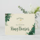 Follaje Tropical Moderno Verdor y Hojas Bordes Personalizados ¿Quieres Ser Mi Portador de Anillos Tarjetas de Propuesta. Perfecto para la papelería de su boda con tema tropical. En una paleta de colores audaces de verdes ricos, esmeralda y aspecto de lámina de oro. Este diseño es perfecto para una boda en la playa, de destino o de verano. Con sentimientos de un paraíso tropical, este diseño de hoja de palma vívida complementará su lugar de celebración de boda en la playa o tropical. En un esquema de color verde oscuro, azul verdoso, esmeralda, follaje y oro - ¿Quieres Ser Mi Portador de Anillos Tarjetas de Propuesta.