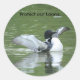 Pegatinas con foto de Common Loon. Proteger a nuestros Loons está inscrito en el frente. Hay diferentes tamaños de pegatina disponibles.