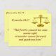 Tarjeta de Memoria de las Escrituras de Justicia Proverbios 18:17. Una balanza de justicia distingue esta tarjeta de memoria del versículo Proverbios 18:17, que dice "El primero en presentar su causa parece justo, hasta que llega la otra parte y lo examina." Estas son herramientas perfectas para ayudarte a memorizar versículos de la Biblia. Este versículo, en particular, es perfecto para aquellos que trabajan en el sistema de justicia. La balanza de justicia está tanto en el frente como en la parte posterior. Un lado tiene todo el versículo y el otro solo la dirección de la escritura.