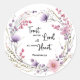 Elegante Biblia Verse Proverbios 3:5 "Confía en el Señor con todo su corazón" pegatina. Las escrituras están rodeadas de flores rosadas y violetas con viñas y hojas verdes. Un bonito diseño floral.
