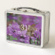 Stylish Inspirational Christian Quote PROVERBS 31 WOMAN Bible Verse Metal Lunch Box, with CUSTOMIZABLE MONOGRAM. The inspirational quote is based on verses from Proverbs 31. The design shows purple bougainvillea flowers with white typography. Add your initials or name at the bottom right hand corner (or delete). This Christian Metal Lunch Box would make an excellent faith-based gift for Mother's Day, Teacher's Appreciation, Pastor Appreciation, Birthdays, or 'Just Because' day. Matching gifts available.