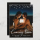 Próximamente, Tarjetas De Invitación De Embarazo. ¡Esperando a los padres! Tipografía con letras blancas y nítidas con la mano moderna "¡Próximamente!" tarjeta de escritura para compartir tus buenas noticias con familiares y amigos. Cuenta con un guión escrito a mano en blanco en una foto completa, sobre estrellas y luces. Foto preferida de fondo oscuro. En el fondo del amortiguador floral negro de fondo. Puede personalizar el diseño reemplazando el texto de ejemplo y la foto vertical. #3343 Si necesitas ayuda o elementos coincidentes, por favor contacta conmigo!
