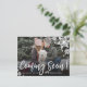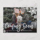 Próximamente, Navidades de fotografía tarjetas postales de Invitación de embarazo. ¡Esperando padres! La moderna tipografía con letras de mano blanca "Muy pronto" para compartir tus felices noticias con familiares y amigos. Cuenta con un guión escrito a mano en blanco, copos de nieve, pie de bebé (o impresión) y foto completa. Puede personalizar el diseño reemplazando el texto de muestra y la foto horizontal. #3343 Si necesitas ayuda o elementos coincidentes, por favor contacta conmigo!