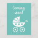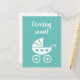 Próximamente, las tarjetas de invitación de embarazo con diseño de carro de bebé. Postal personalizado por esperar a un chica de recién nacido o a un niño. Color de fondo personalizado con acolchador / soplete. También es genial para el fiesta de la ducha para bebés. Añade tu propio encantador mensaje en la parte posterior. Elegante plantilla de tipografía de guión de pincel.