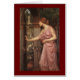 Psique en bata rosa que corre abre la puerta a un jardín secreto. Pintura de arte fino vintage de John William Waterhouse. Dominio público.
