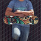 En el parque de patinaje podrá hacer uso de este exclusivo patinaje con un diseño inspirado en el Art Nouveau psicodélico. Las líneas audaces y caricaturizadas y los colores oscuros y precursor crean un contraste cautivante frente a los detalles de la representación de plumas y de las acuarelas florales. Este diseño de skateboard combina la belleza del arte de la tiza con un ambiente llamativo y oscuro, lo que lo convierte en un complemento perfecto para cualquier colección de patinadores.