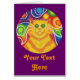 ¡Bebé! Un gato amarillo y naranja a rayas con bigotes giratorios y un fondo sicodélico con motivos de arco iris. Tarjeta de felicitación con un diseño de personalizable amarillo, naranja, rojo, azul, verde, rosa, púrpura y blanco para que pueda personalizar con su propio texto, imágenes e ideas. El texto se puede cambiar fácilmente utilizando la plantilla proporcionada o haciendo clic en el botón "Personalizar" para realizar más modificaciones. Un dibujo original de lápiz de color mejorado digitalmente por Jess Perry.