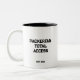 Taza de café personalizada de 444ml. ¡En cuanto a tamaño sólo puedo decir que enorme! pero es lo que esperaba así que estupendo. En el asa me entra la mano entera y no sólo tres dedos como me ocurría con las otras tazas. También comentar que es el tamaño que se ve en las series americanas, tanto para café como para infusión. En cuanto al acabado decir que es correcto, con poco tiempo de uso no puedo especificar mucho más. Pude escoger el nombre y el color pero no la tipografía, quizás esa elección pueda decidir a más gente. En términos generales y por el momento, buena opinión.