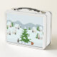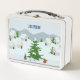 Hermoso paisaje de nieve invernal de pueblo con conejito, ardilla, pájaros y pinos. Pase a un maravilloso paisaje invernal donde quiera que vaya con nuestra hermosa caja de almuerzo de invierno Scenery. Esta encantadora lonchera le da el encanto de un pueblo nevado adornado con detalles sencillos que le dan calor a su corazón. Las nevadas onduladas cubren el suelo y las colinas, los pinos están altos y orgullosos, y las encantadoras cabañas salpican el paisaje. Los pájaros, un conejito y una ardilla admiran los árboles en el aire helado y le dan un toque de magia de vida silvestre al diseño. Admire el espíritu de invierno y la temporada de nieve con este adorable producto. El nombre es personalizable, por lo que puede personalizar este cuadro con su nombre u otro texto.