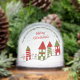 Este hermoso Navidad neva globo con tu propio mensaje de amor es muy tendencia. La parte inferior está decorada con un naif ilustracion de pueblo de color verde y rojo. Todos los textos están escritos con tipografía refinada y son personalizables. Perfecto para desear a sus seres queridos navidades hermosos.