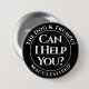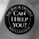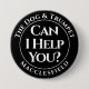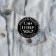 Una placa para el personal, que dice "¿Puedo ayudarte?" Cambie la redacción a sus detalles. Insignia del personal. Insignia oficial en blanco y negro.