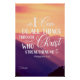 Un Poster de pared con "Puedo hacer todas las cosas a través de Cristo que me fortalece" Philippians 4:13 versículo de la biblia. Tiene una hermosa puesta de sol y un fondo de montaña y puede ser personalizado con un nombre o borrar si no lo desea.