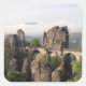 Pegatina de fotografía de recuerdo del puente de piedra Bastei (Bastei Brücke) sobre el río Elbe, que une las icónicas formaciones rocosas de las montañas Elbe Sandstone cerca de Dresden en el parque nacional Saxon Suiza (Sächsische Schweiz) en el este de Alemania.