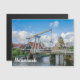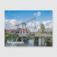 Pintura de la calle y del tradicional holandés levantando puente de madera en el pueblo de pescadores de Volendam, Holanda del Norte, Holanda.