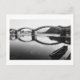 Fotografía en blanco y negro de Kintai-kyo, un histórico puente de madera que atraviesa el río Nishiki en Iwakuni, Japón, en una serie de cinco arcos de piedra.
