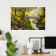 Puente a Cruzar impresión en venta. Óleo de David E Paul. Puente y rayos de sol que atraviesan el prado.