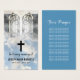 Las tarjetas de oración, también conocidas como sagradas tarjetas, son parte de un funeral católico tradicional. Normalmente muestran una escena religiosa o un santo de una imagen del tamaño de una tarjeta de visita. Las tarjetas de oración también se han vuelto muy populares recientemente entre los cristianos ortodoxos y los cristianos protestantes. Esta tarjeta de oración representa la abertura de las puertas del cielo, con una cruz religiosa, la persona que murió, la fecha de nacimiento y muerte, y al revés una oración de tu elección.