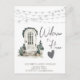 Puerta principal de Navidad en acuarela y luces de cadena.