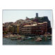 Tarjeta de saludo en blanco del puerto de Vernazza, Cinque Terre, Italia. Vernazza es un pueblo y comunidad situado en la provincia de La Spezia, Liguria, al noroeste de Italia. Es una de las cinco ciudades de la región de Cinque Terre. Vernazza es la cuarta ciudad que se dirige al norte hacia Cinque Terre. No tiene tráfico de coches (una carretera conduce a un aparcamiento a las afueras de la ciudad) y sigue siendo uno de los "pueblos pesqueros" más auténticos de la Riviera italiana.