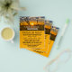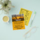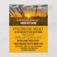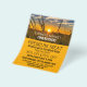 Puesta de sol en el campo, volantes de publicidad de agricultor y carnicero por la tienda de tarjetas de presentación.