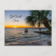 Tarjeta postal de "Recupérate pronto" con una puesta de sol de Gulf Breeze, Florida, Estados Unidos con la silueta de una palmera inclinada y un barco de vela naufragado en la bahía de Pensacola. ¿Buscas más productos? Visita mi tienda: http://www.zazzle.com/timelessmomentsphtgy