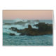 Tarjeta en blanco del saludo o de nota. Imagen fotográfica de la puesta del sol en la costa.