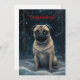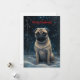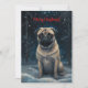 "Abraza la magia del invierno con nuestra tarjeta de Navidad personalizada con un adorable pug en la nieve.