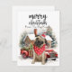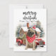 PUG Dog Merry Christmas on Red Gold Marble Holiday Card
