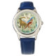 Diseño original de arte fino de un Brachiosaurus, Corythosaurus y Pterodactyl por la artista y diseñadora Carolyn McFann impreso en un reloj de personalizable de mano de calidad sólo para los niños amantes de los dinosaurios.