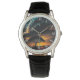Árbol de planeta- reloj de cuero negro protector de la corona