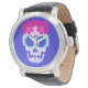 Este reloj es perfecto para cualquier coleccionista de cráneos o celebrador del Día de los Muertos. El diseño simple y audaz hace que este cráneo (calavera) sea más divertido que atemorizante. ¡Genial para Halloween también!