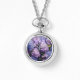 Hermoso collar de reloj monogramado floral, o reloj de pulsera. Fondo de flores de hortensia lavanda rosa y azul en relojes que vienen en muchos estilos y precios. Se puede agregar un monograma de tres letras en la parte superior de la cara. Las letras son rosadas, con un efecto de sombra para destacar. Se muestra en un reloj y cadena de plata, o elige oro. Este diseño se transfiere a cualquier tipo de reloj de pulsera también. Hace un regalo encantador y único, personalizado para mujeres de todas las edades.