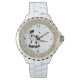 Este reloj muestra a un personalizado de vaca kawaii muy lindo en el fondo de un punto polka retro gris claro. Si no le gusta la muñeca blanca o los diamantes de imitación, puede elegir otro muñeco a la derecha de esta página.