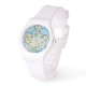 El cuadro es de un ángel blanco y dorado con acentos verdes rodeado de un cielo azul giratorio y corazones dorados. Los ángeles tienen un corazón blanco en lugar de un halo sobre la cabeza del ángel. Haz diseños personalizados de guardian angel watch con tus mensajes personales y/o fotos. Utilice el botón "personalizar". ¡El arte de ángel de la guarda hace grandes regalos personalizados de reloj de pulsera para personalizados!