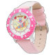 Este lindo y de moda animador reloj es un reloj perfecto para tu adorable animadora. Disponible en otros productos, este alegre diseño presenta una animadora voladora con el eslogan: Saludos, Saludo todo el día. Este reloj con temática de alegría es una gran idea para los animadores jóvenes y les encantará usarlo. Echa un vistazo a otros regalos y productos divertidos y de moda en venta en Stand Up and Cheer.