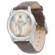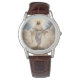 Este reloj de cuero clásico de los hombres se muestra con una huella de arte de Jesús en la cara de reloj y tiene correas de cuero marrón. Personalizar este reloj o compra como está. Imagen con licencia