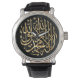 Un reloj elegante para hombres musulmanes con la shahada impresa en caligrafía dorada.