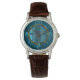 Un reloj señorial con correas de cuero croc grabado en relieve y funda de aleación de plata. Las características también incluyen un verde azulado con diseño de anillo de oro redondo en la cara.Numerales geométricos para coincidir ,