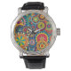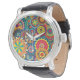 Pulsera Flores ráfagas de cuero ventilado reloj negro